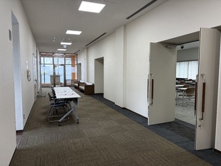 廊下が広いので廊下で受付しました〜