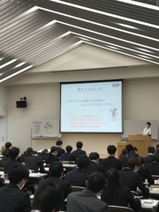 102名のフレッシュな新入社員・中途入社社員の皆様の受講のもと、吉山日加里先生の熱い研修が開催されております。